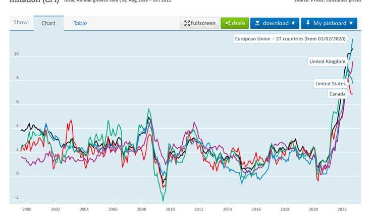 從宏觀經濟條件看,目前加密市場仍然面臨著不斷增加的流動性壓力。在疫情下,各國通過多次降息與紓困政策,釋放大量流動性,以支撐疫情期間的經濟穩定。隨著大多數國家進入后疫情時代,先前釋放的流動性造成的通脹問題亟待解決。盡管目前以美聯儲為代表的多個主要市場央行已經將利率拉升至較高水平,但通脹水平仍處于相對高位: