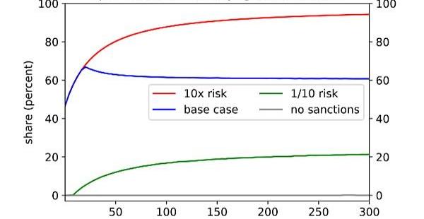 在第三種模型中,當面臨非常高的制裁風險時,央行持有的BTC可能高達其投資組合的40%?。