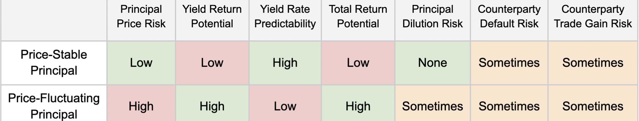 價格波動的本金代幣能夠實現更高的回報,因為本金可以升值,但這是一把雙刃劍,因為本金價值理論上也可以趨于零。