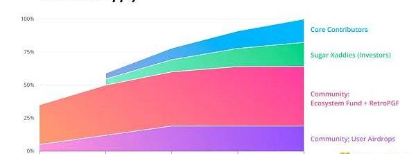 Optimism的流通代幣供應量目前僅占發布時總供應量的5%,并將以每年2%的速度增長。以下是解鎖時間表: