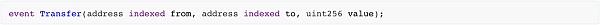 然后我們看一下該事件的參數,其中from和_to地址都是有索引的,value值是沒有索引的。所以_from和_to地址會被當成主題,而_value值會被當成數據。