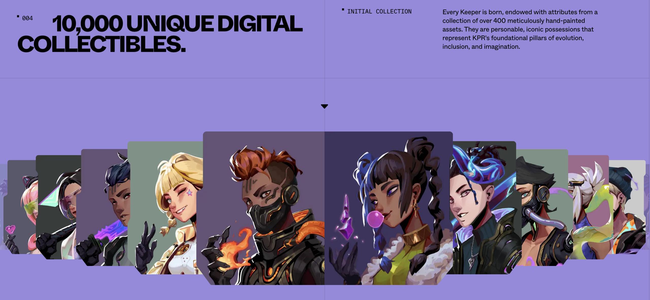 KPR的官網展示了一個可交互的網站,用戶通過瀏覽官網一方面可以了解到團隊的信息、項目的愿景、世界觀等等,另一方面可以沉浸式地感受KPR構筑的世界,與用戶之間可以產生情感紐帶和共鳴。