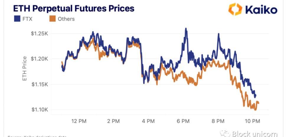 FTX現在是在煉獄,交易所的所有資金實際上都變成了大富翁的錢或合法債權,這取決于你的時間跨度。做市商和投資用戶都被困在交易所里,與其他市場隔絕,只能發展自己的生物圈,這一點最簡單的體現是FTX上的ETH永續合約的價格,它在11月9日開始出現與其他交易所的ETH價格出現偏離。