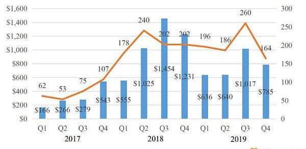 2017-2019行業投融資數據統計數據來源:火幣研究院