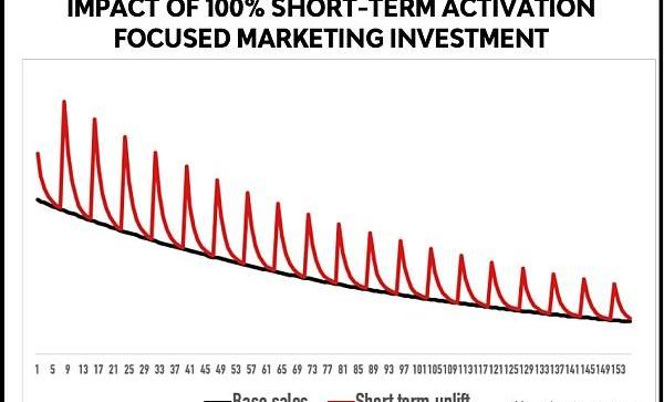 這種向注重短期業績的媒體轉變的問題是,雖然它可以提供銷售的急劇飆升,但其效果是短暫的。如果從時間上看,缺乏對品牌建設的投資將導致整體品牌力量的降低,而這又會產生降低媒體業績影響的連鎖反應。因此,品牌最終會陷入業績下降的趨勢。