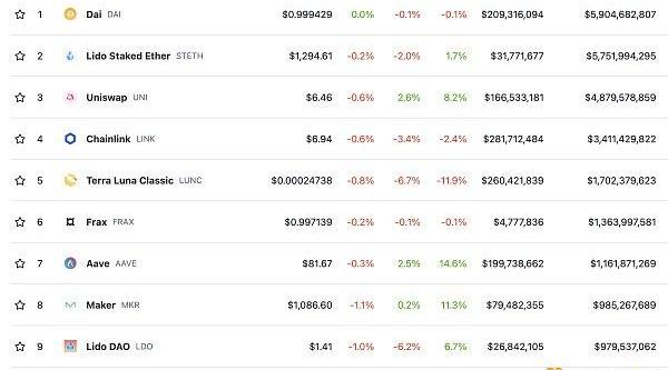 DeFi項目鎖定資產前十排名及鎖倉量數據來源:defillama