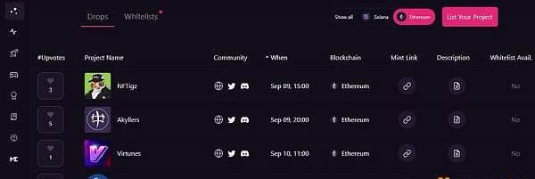 另一個只有在MagicEden上才能找到的獨特功能是白名單管理。MagicEden支持即將推出的精選列表,并為其白名單過程提供軟件管理。