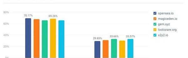此外,盡管控制了每周36%的NFT交易量,但x2y2的平臺訪問流量最低,這表明x2y2上的大多數交易是通過GEM等聚合器完成的,而不是直接在其網站上進行。