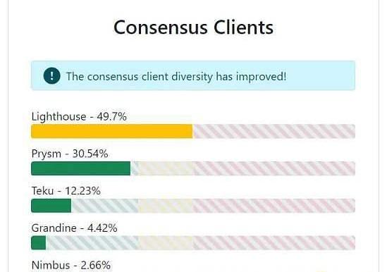 在這一點上,共識層分布有了很大的改善。幾個月前,Prysm在所有共識客戶中占75%。