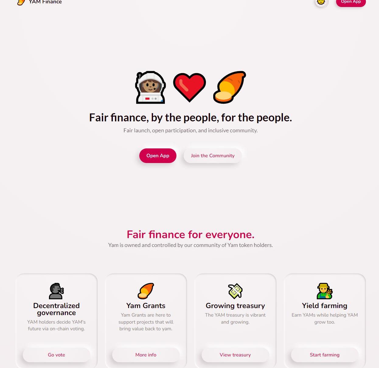 作為一項貨幣實驗,YamFinance從一開始就探索了各種DeFi概念,例如彈性供應代幣、協議金庫治理、公平的代幣分配機制和完全鏈上治理。該協議的治理代幣以紅薯命名,均勻分布在八個質押池中,以覆蓋整個DeFi社區。