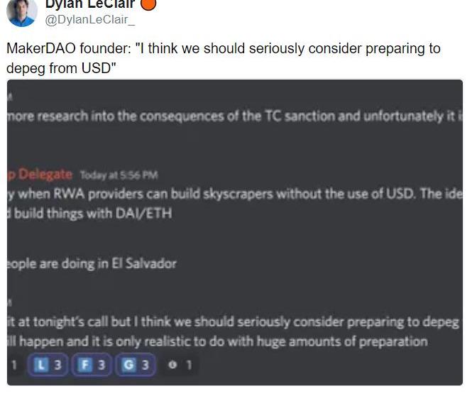 就MakerDAO的算法穩定幣DAI而言,選擇是類似的,但最近財政部的制裁和隨后代表Circle的合規性,使MakerDAO被質疑其對USDC的日益依賴。