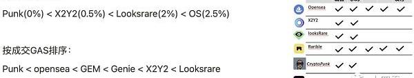 按手續費排序:Punk(0%)<SudoSwap≤X2Y2(0.5%)<Looksrare(2%)<OS(2.5%)。