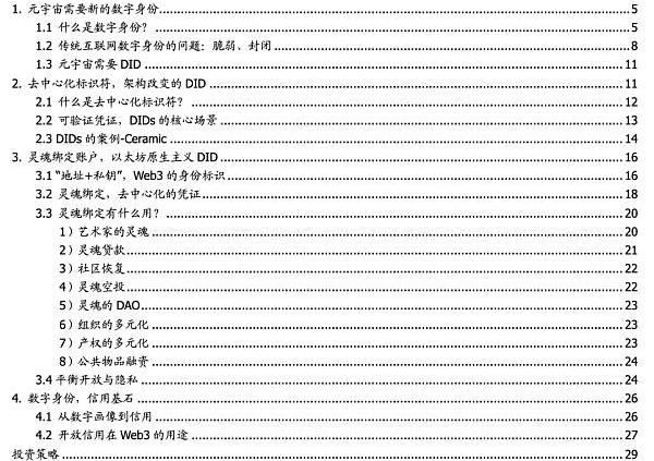 投資建議:去中心化身份是元宇宙發展的前置條件,有著巨大潛力與社會性。“地址+私鑰”的賬戶范式轉移是Web3數字身份發展的第一步,確定性最強,錢包、域名、數字簽名收益。數字憑證是發展空間最大的賽道,關注目前鏈上憑證基礎設施,將受益于SBT概念落地。基于數字身份的“去中心化信用貸”是Defi大規模推廣的關鍵,值得期待。