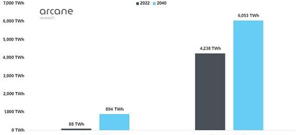 表2與表1相同,但不是以TWh為單位顯示能耗,而是以其占全球能耗的百分比展示。在這里,我假設到2040年全球能源消耗的年增長率為2%。