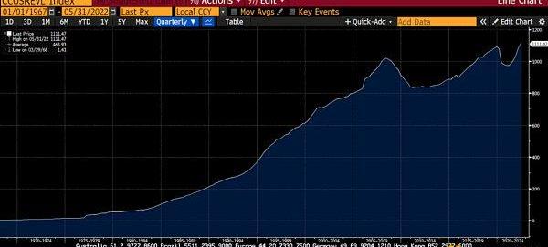 美聯儲對家庭資產負債表的影響與這些家庭持有的貸款規模直接相關。如果普通房屋或汽車的價格突然下降50%,那么美聯儲提高幾個百分點的利率對家庭來說不會有太大的影響,因為雖然他們為房屋或汽車支付的利率會更高,但他們每月的凈支付額可能會降低。然而,我們正處于美國經濟超過50年的密集金融化時期的尾聲,這推動了任何可以貸款的資產價格的指數式上漲。
