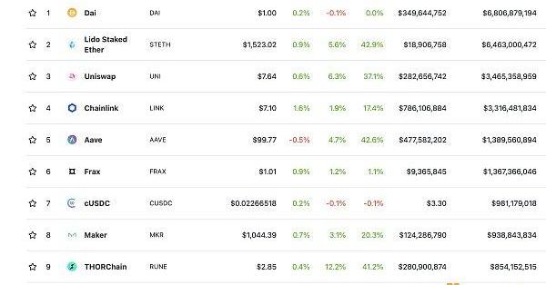 DeFi項目鎖定資產前十排名及鎖倉量數據來源:defillama
