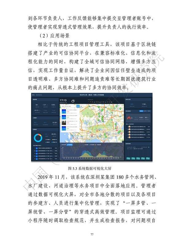 作為一大亮點,報告引用了大量基于FISCOBCOS,并在粵港澳大灣區落地的應用案例:在數字經濟發展方面,“粵澳跨境數據驗證平臺”、“灣區金融科技人才鏈”、“珠三角征信鏈”、“深證金融區塊鏈平臺CapitalBCOS”等案例入選;在數字社會建設方面,“澳門智慧城市建設之證書電子化”、“粵澳健康碼跨境互認”、“騰訊99公益日”等案例入選;在區塊鏈推動數字政府建設方面,“網貸機構良性退出投票平臺”、“區塊鏈司法存證仲裁服務平臺”、“深圳水務集團工地安全管理系統”、“智慧司法區塊鏈留痕系統”等案例入選。