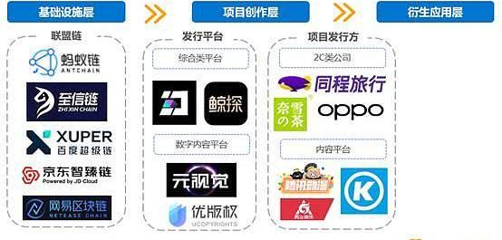產業鏈情況:由基礎設施層、項目創作層和衍生應用層構成