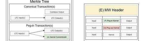 正如PeterWuille在他2016年的播客中所預測的那樣,MimbleWimble是作為現有萊特幣網絡的側鏈被整合進萊特幣。這意味著有一條稱之為擴展區塊的“平行高速公路”區塊,其區塊生產節奏與萊特幣網絡上的區塊相同,用戶可以通過發送資金進出這條平行鏈來增強萊特幣交易的隱私。然后礦工將在萊特幣主鏈上提交一個默克爾根,這個默克爾根為來自擴展區塊的所有交易的摘要。