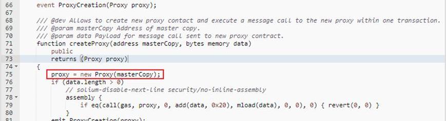 通過重放交易,黑客在Optimism/L2上面創建了跟Ethereum/L1上完全相同的GnosisSafe:ProxyFactory1.1.1合約,其中創建代理合約函數如下: