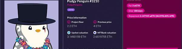 NFTFi.com,是一個成熟的拍賣場形式P2PNFT借貸平臺,其出價、利率計算與時間都由資金提供方與NFT抵押方共同決定。