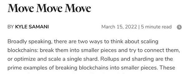 比如最近Multicoin寫得最多的一個概念之一:可組合性,指的是在一個平臺上不斷構建新模塊,將其編程到更高階的應用程序中。Multicoin認為構建“加密版樂高”的時機已經成熟,用戶可以以不同的方式組合基礎協議。在論證可組合性的同時,Kyle也多次輔以論證為什么公鏈擴容的答案不可能是“分片”。