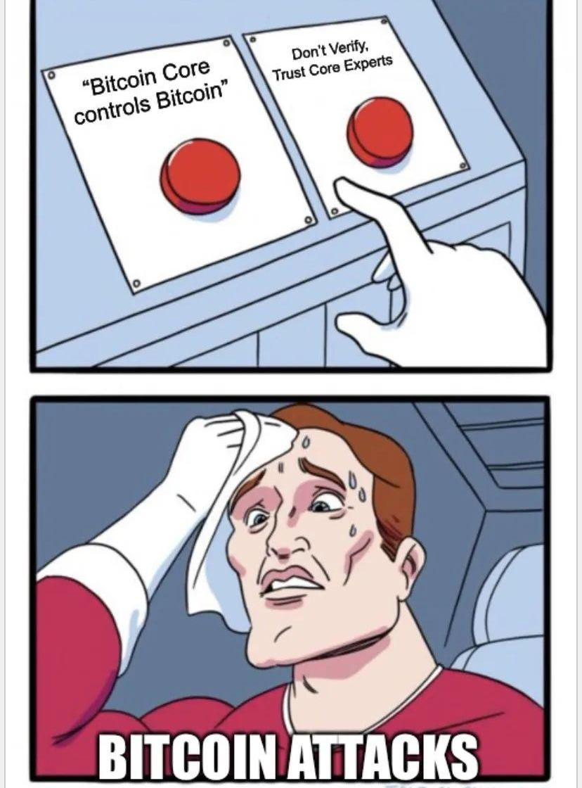 但是比特幣Core可能會被這些人控制:GitHub內部員工(偷偷篡改),和幾個開發者的密鑰(而不是那幾個開發者本人).其中開發者有經歷過因為輿論退出,或者被其他人踢出的情況.當開發者的推送不被通過時,他們就有可能會直接硬來,進行分叉.