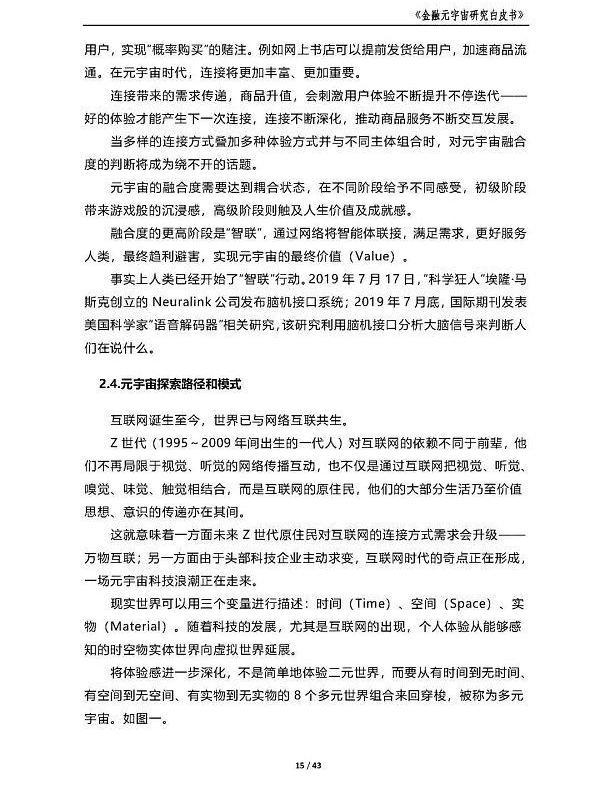 XRP/HKD-5.74%近日,中國金融信息中心召開《金融元宇宙研究白皮書》線上發布會。與會嘉賓描繪出“金融元宇宙”的未來樣貌。