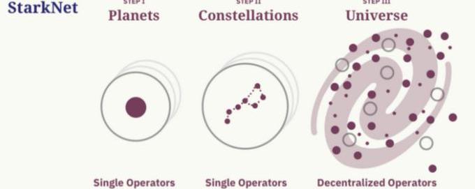 初步階段StarkNet將由一個中心化的證明者驅動,應用程序將需要申請白名單按順序部署,像Optimism一樣。他們的計劃是發展生態系統,并逐步將StarkNet去中心化以實現路線圖中的“宇宙”(Universe)階段。