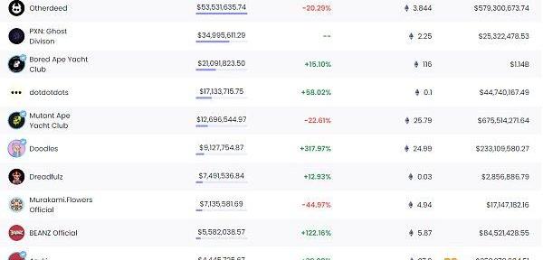24小時內銷售漲幅前十的NFT數據來源:NFTGO