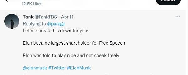 誰曾想到,就在這條3月26日推文的一周后,馬斯克自己竟然成為了Twitter?最大的股東……