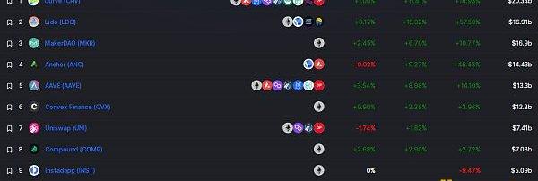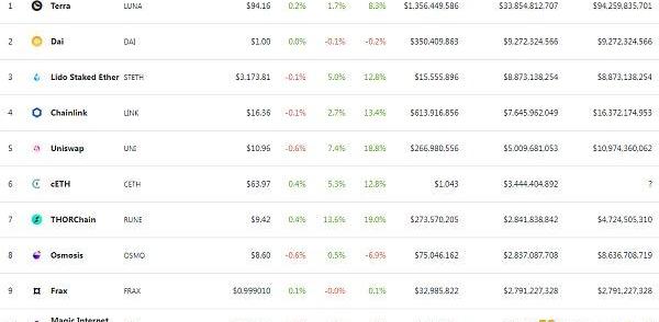DeFi項目鎖定資產前十排名及鎖倉量數據來源:defillama