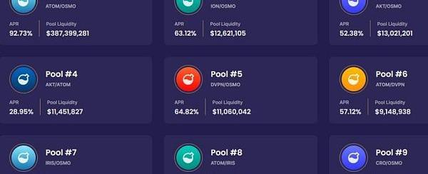 現在Osmosis已經支援了32種代幣:ATOM、OSMO(Osmosis的原生代幣)、ION,、AKT、DVPNIRIS、CRO、XRPT,、REGEN、UST等,真正實現了不同鏈之間的自由轉換,且親測到賬速度可以以秒為單位,手續費也幾乎可以忽略。此外,Osmosis上質押的APR非常可觀。