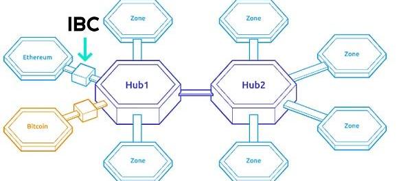 ?Cosmos網絡由許多獨立的并行區塊鏈組成,網絡中第一個區塊鏈是CosmosHub,其他的并行鏈稱為Zone,通過跨鏈協議與Hub進行跨鏈操作。