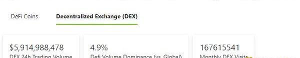 2.過去24小時去中心化交易所的交易量:59.14億美元