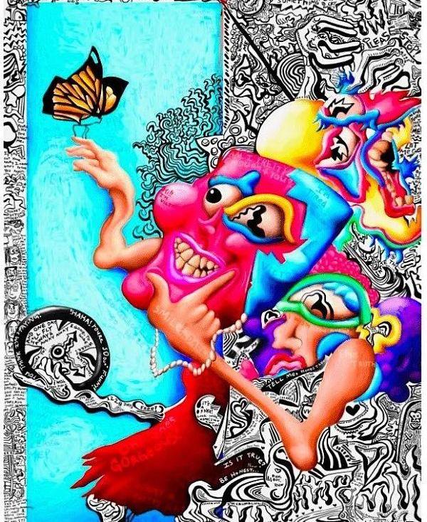 來自拉斯維加斯的Fewocious,本名是。去年1月份剛滿18歲,被粉絲們親切地稱為“Fewo”。這位18歲的藝術家在社交媒體上擁有令人難以置信的10萬名粉絲,并已售出令人震驚的3189件作品。他有一種明亮、醒目、流行的超現實主義風格,讓人聯想到兒童拼貼藝術,但又有一種非常明確的成人優勢。