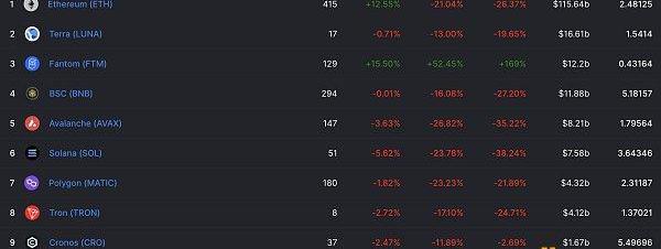 XRP/HKD+3.52%1月24日,據DefiLlama數據顯示,截至24日17時,Fantom鏈上總鎖倉量達122億美元,超越BSC在公鏈中排名第三。目前,鎖倉量排名前5的公鏈分別為以太坊、Terra、Fantom、BSC、Avalanche。