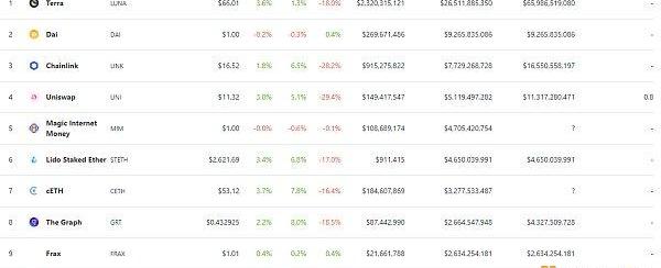 DeFi項目鎖定資產前十排名及鎖倉量數據來源:defillama