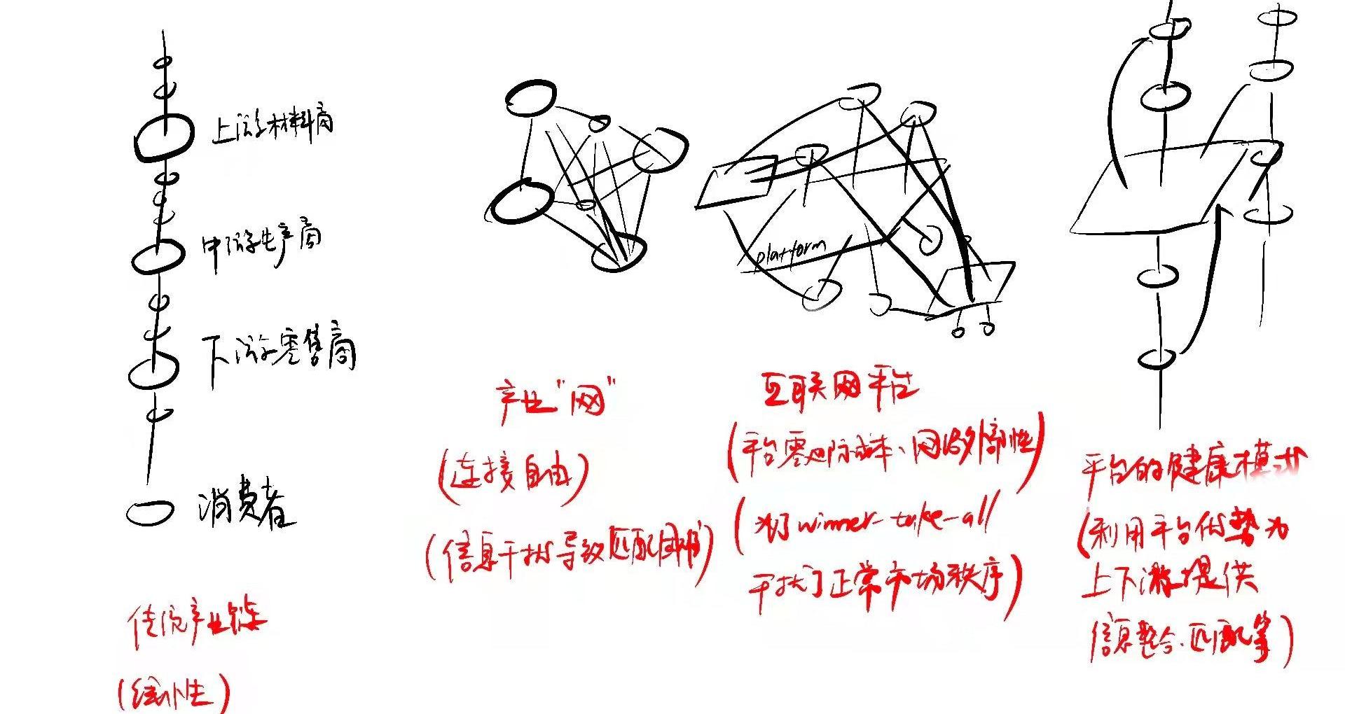 平臺所做的事情,本質上來說就是信息匹配。線性的傳統產業鏈被互聯網重構為一個個節點后,需要有一個東西來實現原本由產業鏈實現的東西,那就是匹配供需信息。廠商去了B端,消費者去了C端。消費者對某一類產品的需求可以為生產商所捕捉,當整個平臺上出現足夠多相同的需求,生產商的生產就會變得有利可圖。