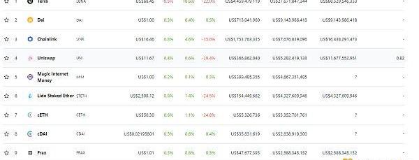 DeFi項目鎖定資產前十排名及鎖倉量數據來源:defillama