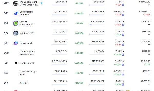 24小時內銷售漲幅前十的NFT數據來源:NFTGO