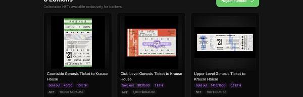 KrauseHouse發行的三種不同面額的NFT球票丨KrauseHouse