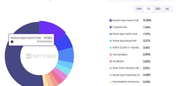 不同系列的NFT交易量占比數據來源:nftgo.io