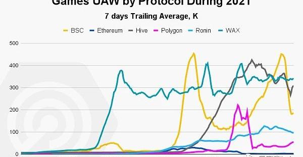 2021年,BSC將自己定位為行業中最相關的區塊鏈之一。從專注于DeFi產品開始,BSC慢慢成為GameFi的家。GameFi或DeFi的游戲化對BSC的活動至關重要,尤其是在下半年,也就是AlienWorlds和AxieInfinity被合并為頂級游戲選項后的幾個月。