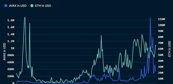 Avalanche和以太坊之間的交易比率一直在顯著增加,特別是自8月份以來。