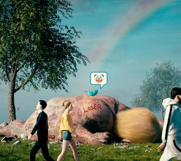 去年10月,他在NFT交易平臺NiftyGateway上以660萬美元售出一件10秒的視頻作品——《Crossroad》,刷新當時交易記錄。在這幅作品里,一個巨人趴在地上,周圍人來人往,卻沒有人停下來,哪怕多看一眼。