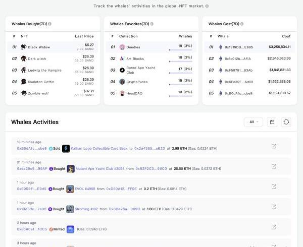 如果并沒有明確的要追蹤某一個鯨魚或項目,而是比較廣泛的尋找投資機會,可以直接到WhalesActivities觀察巨鯨的實時活動。