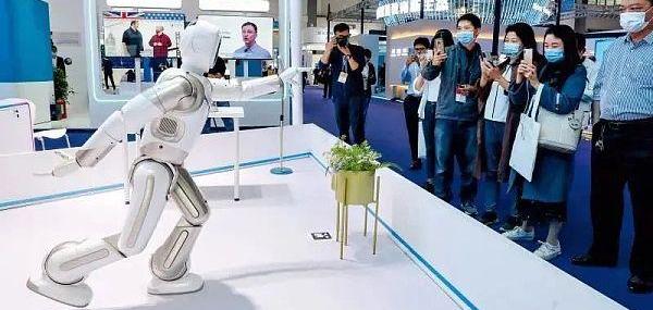 5月26日,參會者在貴陽舉辦的2021中國國際大數據博覽會上觀看智能機器人?歐東衢攝/本刊