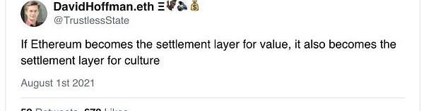 此前,Bankless聯合創始人DavidHoffman曾提出,如果以太坊可以成為價值結算層,就也能成為文化結算層。可謂文武雙全。現在看來,以太坊正朝著這個方向前進。