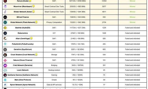 盡管Polkadot平行鏈拍賣還沒開始,但是IOSG作為Kusama平行鏈拍賣的積極參與者已經有了豐富經驗。在已經結束的兩輪Kusama共計11個插槽拍賣中,我們旗下的portfolio的表現不俗,已經有7個portfolio項目拿到了Kusama平行鏈插槽。?